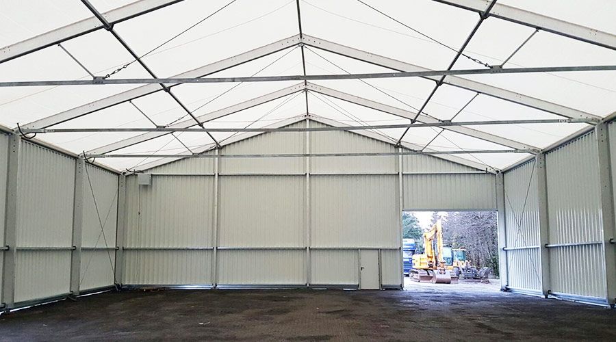 Industriezelte gibt es in verschiedenen Ausführungen, abhängig vom Nutzungszweck und den Anforderungen. Dabei unterscheiden die unterschiedlichen Raumlösungen sich hauptsächlich in der Art der verwendeten Verkleidungsmaterialien. Ob einfacher Unterstellschutz, wetterfeste Unterbringung oder wärmegedämmte Halle – bei uns finden Sie für jeden Zweck die optimale Ausführung.